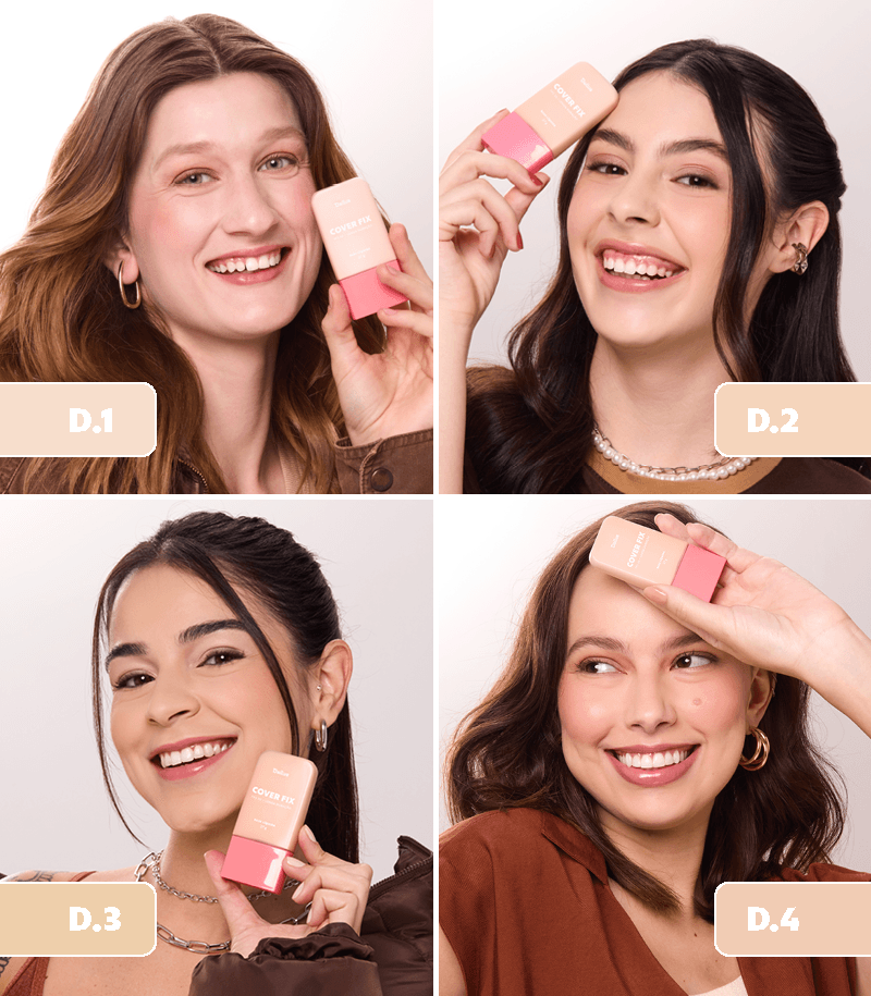 Sobre o tom: o D.4 é um bege camurça, com fundo neutro levemente oliva. Indicado para peles claras que bronzeiam, são sensíveis ao sol e queimam moderadamente. Sabe aquela casquinha de sorvete, bem crocante? Simboliza esse tom!