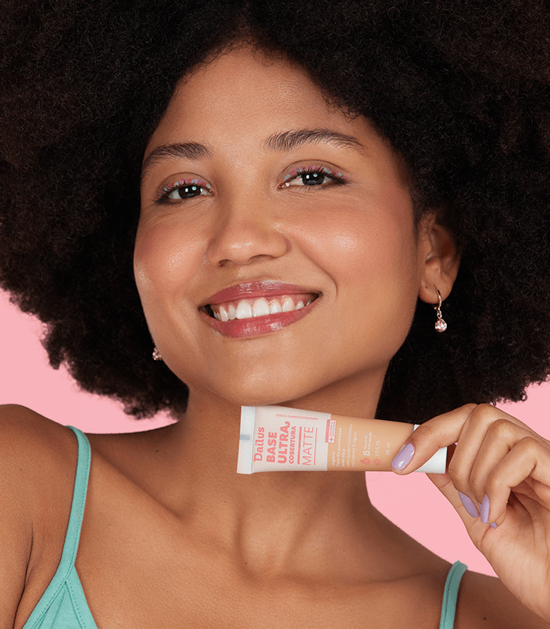 Preparar a pele para receber a base é fundamental! Experimente usar a ÁGUA MICELAR DEMAQUILANTE para purificar e limpar os poros, e depois hidrate o rosto com o seu produto favorito. Para facilitar a aplicação, coloque um pouquinho da base no dorso da mão e escolha o acessório que você mais gosta de usar para uniformizar a pele (pode ser um pincel, esponja ou até mesmo a ponta dos dedos). Dê leves batidinhas e evite arrastar a base, isso ajuda a concentrar melhor o produto. Permite construir camadas, ideal para deixar a cobertura do que jeito que você mais gosta.