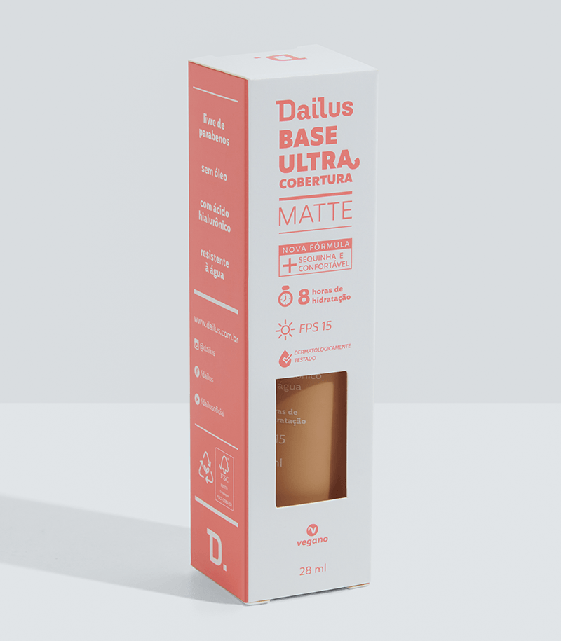 A nossa BASE ULTRA é mais sequinha e confortável, acabamento matte e com uma cobertura que permite construir camadas (como você preferir!). A base possui o já conhecido ácido hialurônico, que garante até 8h de hidratação, além de FPS 15 que protege a pele dos raios ultravioleta (UVA) e uma fórmula 100% vegana, livre de parabenos e óleos.