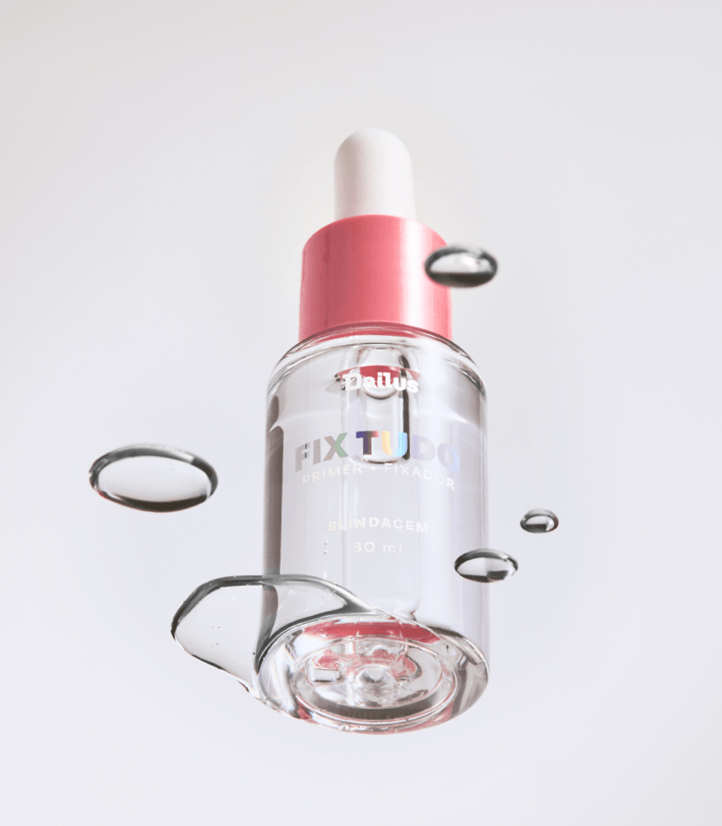 Esse produtinho multifuncional será o seu grande aliado no make, olha só! Use a Fix Tudo como primer, antes de começar a aplicação da base. A blindagem cria uma película na pele, que é capaz de aumentar a resistência e fixação da sua maquiagem ao longo do dia. É só aplicar algumas gotinhas na mão, espalhar em todo rosto e esperar a pele absorver completamente antes de seguir para a próxima etapa. Você também pode utilizar a blindagem para diluir bases, corretivos e produtos cremosos, até obter a textura desejada. Essa misturinha também ajuda a melhorar a durabilidade do make, viu? Demais!