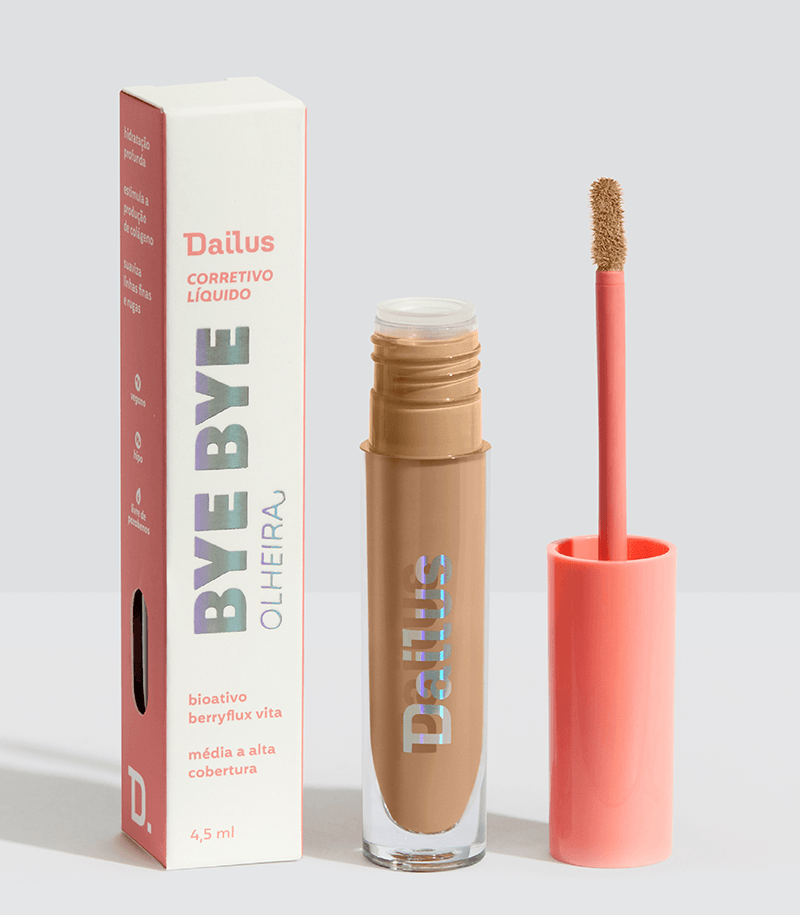 O Corretivo Líquido Bye Bye Olheira da DAILUS chegou com tudo! Com média a alta cobertura e acabamento acetinado, é ideal pra disfarçar olheiras, corrigir imperfeições e uniformizar o tom da pele.