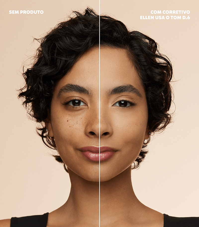 O formato espátula do aplicador é ideal pra depositar a quantidade certa de corretivo! Se você deseja camuflar regiões pontuais, como olheiras e manchinhas, espalhe o produto com leves batidinhas usando o dedo anelar ou um pincel de cerdas curtas e firmes. Você também pode finalizar o make com a sua Base Ultra Cobertura Matte e selar o rosto com o Pó Solto Ultrafino.