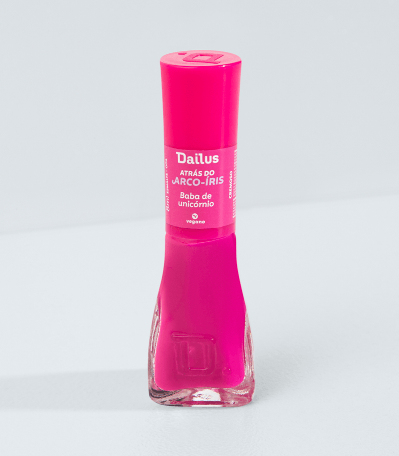 O pink brilhante que a gente respeita e ama usar atende pelo nome de Baba de Unicórnio. Ele tem alta cobertura (e você não vai precisar aplicar várias camadas para chegar na cor ufa!), acabamento cremoso e é bem brilhante. A dupla tampa anatômica + pincel big flat brush é implacável, nossa grande aliada para facilitar a esmaltação. Praticidade é tudo, não é mesmo? E mais: o esmalte seca bem rápido e dura muito! Se você é colecionadora, também vai amar o design exclusivo do vidrinho.