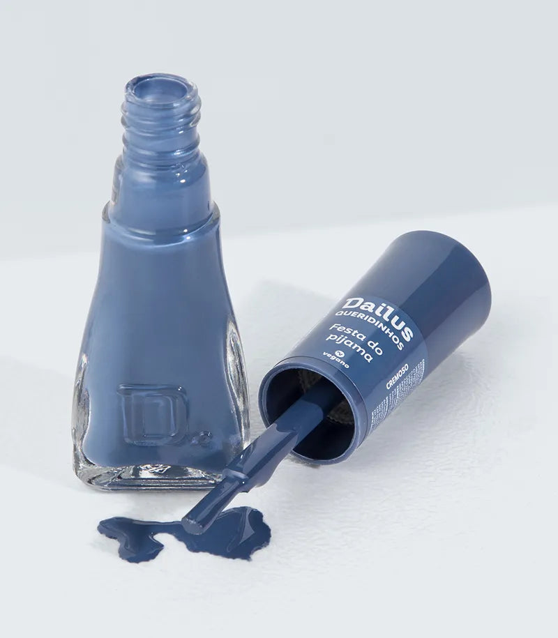 Um tom de azul invernal que é nada óbvio. O Festa do Pijama faz parte da nossa coleção Queridinhos e tem alta cobertura, secagem rápida, longa duração, acabamento cremoso e é bem brilhante. Facilite a aplicação do esmalte com a dupla tampa anatômica + pincel big flat brush, uma grande aliada na hora da esmaltação.