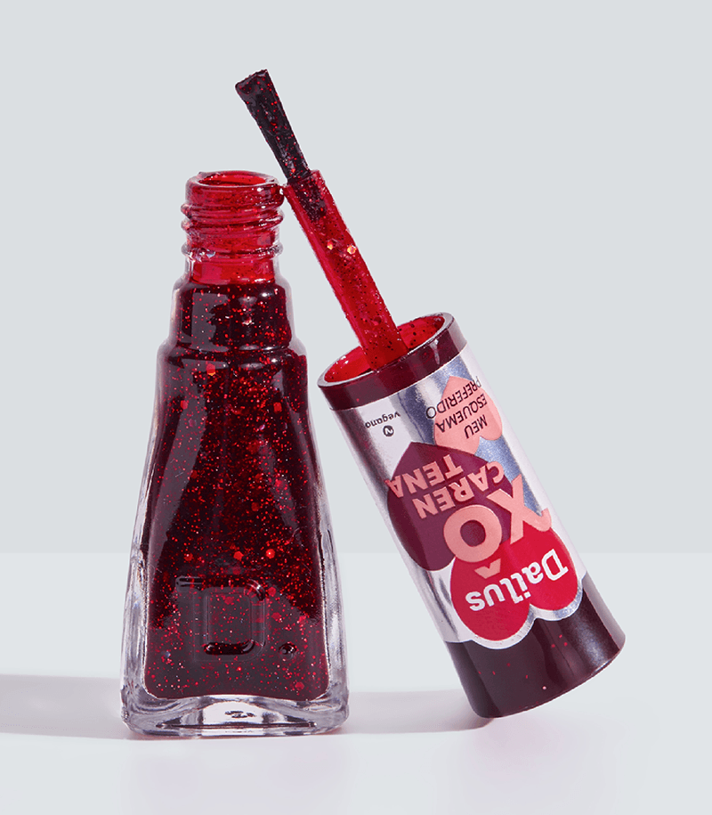 Um vermelho cor de geleia de frutas vermelhas, translúcido e com efeito glitter? Temos! O MEU ESQUEMA PREFERIDO, da coleção limitada XÔ CARENTENA, tem tudo pra ser o novo favorito. Com pequenas partículas de brilho holográfico, o esmalte tem brilho intenso e ainda possui longa duração. A sua secagem rápida é perfeita para deixar as mãos livres, sem medo de borrões! Tudo isso com fórmula 100% vegana. Bora experimentar?