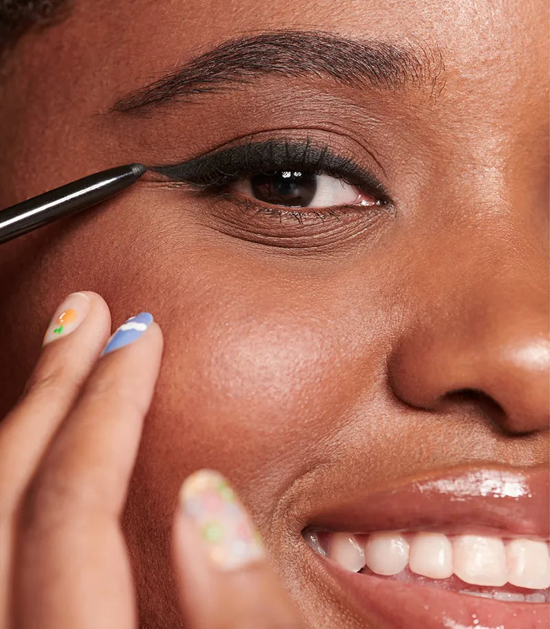 Você pode criar o esfumado do jeito que mais gosta, usando o produto para construir a base e intensificando com sombras. Experimente um olho preto minimalista, que não precisa ser chamativo, esfumando apenas o produto na pálpebra móvel.