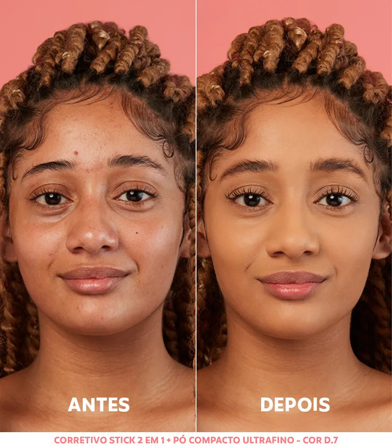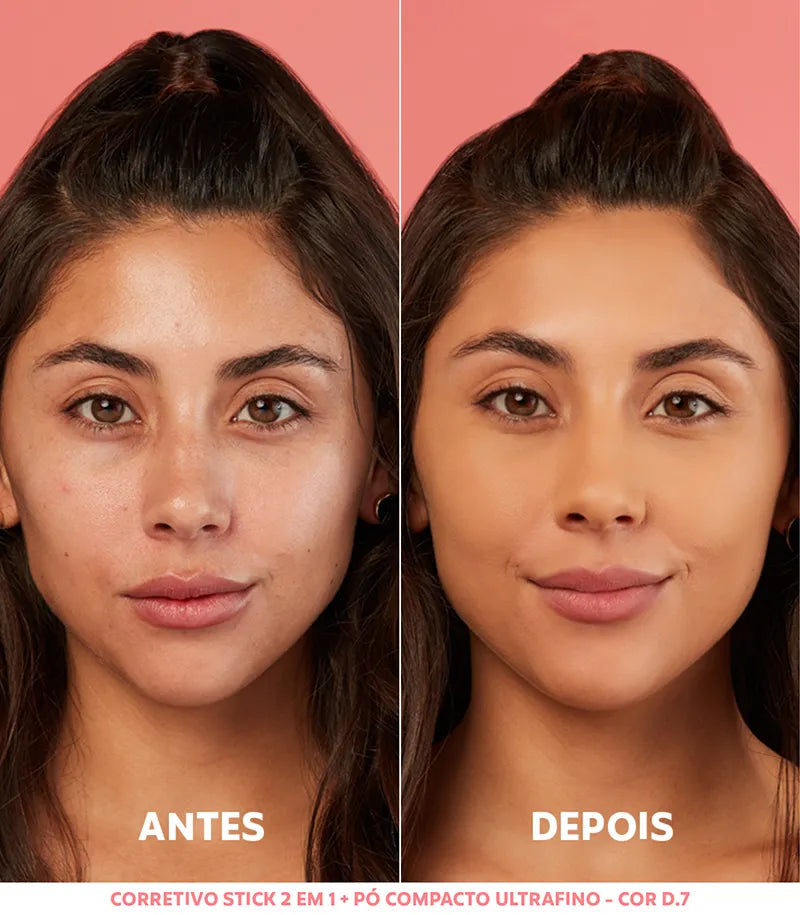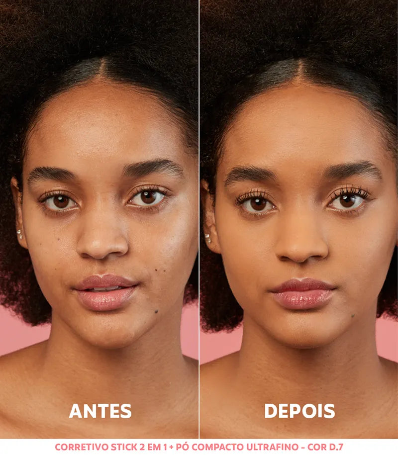 Você pode combinar o Pó Compacto Ultrafino com o Corretivo Bye Bye Olheira! Use o produto cremoso para fazer correções pontuais no rosto, aplicando nas regiões onde você acha necessário. Depois, é só selar e aumentar a fixação com o pó, que também tem alta cobertura. Pele natural e levemente matte, check!